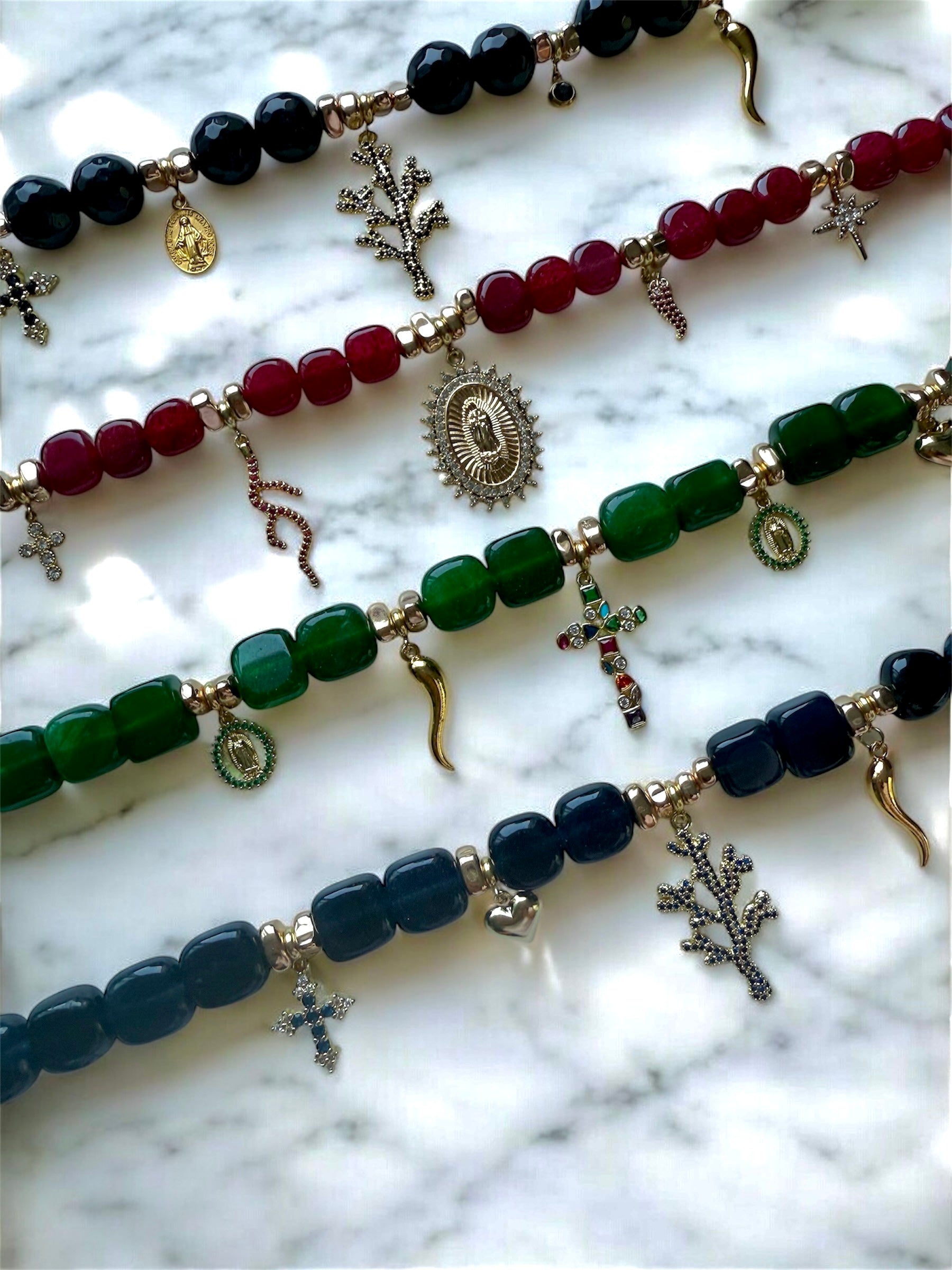 Nos bijoux sont entièrement fabriqués à la main selon un savoir-faire artisanal. De légères variations de couleur, de forme ou de texture peuvent apparaître, témoignant de leur authenticité et rendant chaque pièce absolument unique.